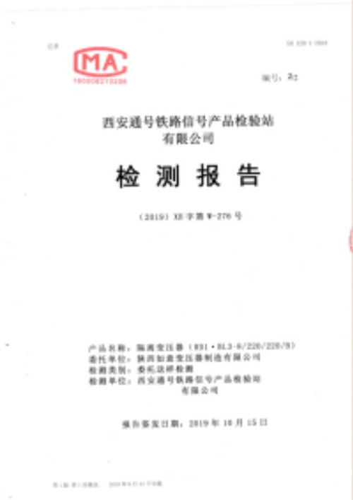 2019年10月16日,公司生產(chǎn)的各型號融雪隔離變通過新標(biāo)檢測