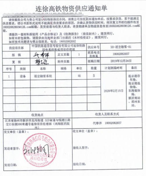 2019年12月26日,中標新建連云港至徐州鐵路四電及相關工程OISG標段鐵路建設工程信號設備道岔融雪項目